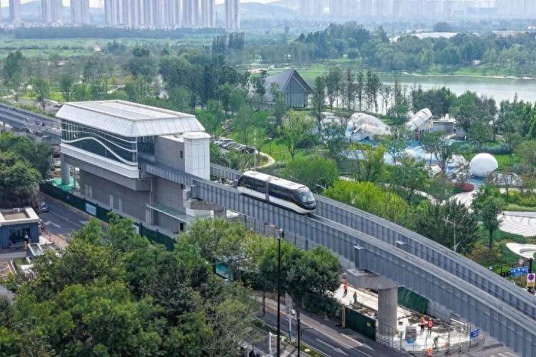济南云巴线路呈“圆环”状,闭环运行,分为内环、外环两个相反方向。